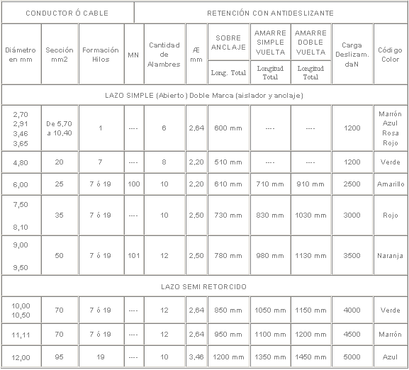 ESPECIFICACIÓN TÉCNICAS DE RETENCIONES PREFORMADAS