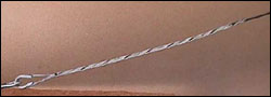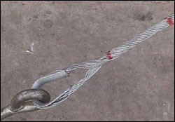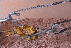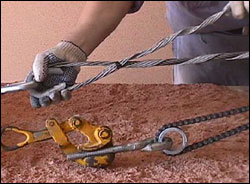 el cable de acero ya amarrado a la torre o poste, tensar con una carga