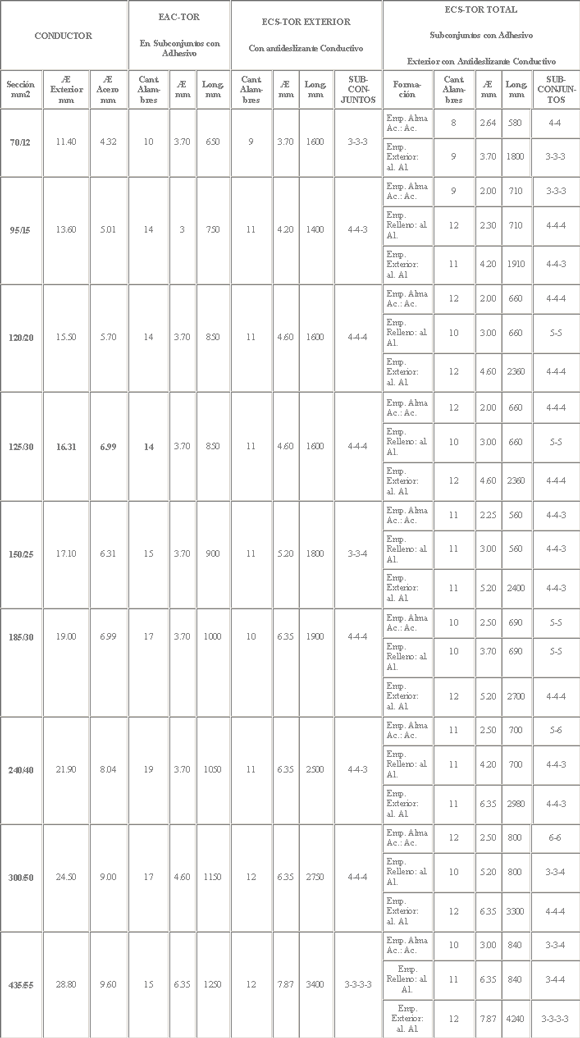 cables de Acero y 3 tipos para conductor de aleación de Aluminio